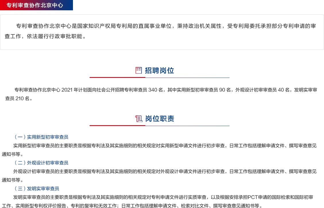 2020專利審查協(xié)作北京中心招聘公告