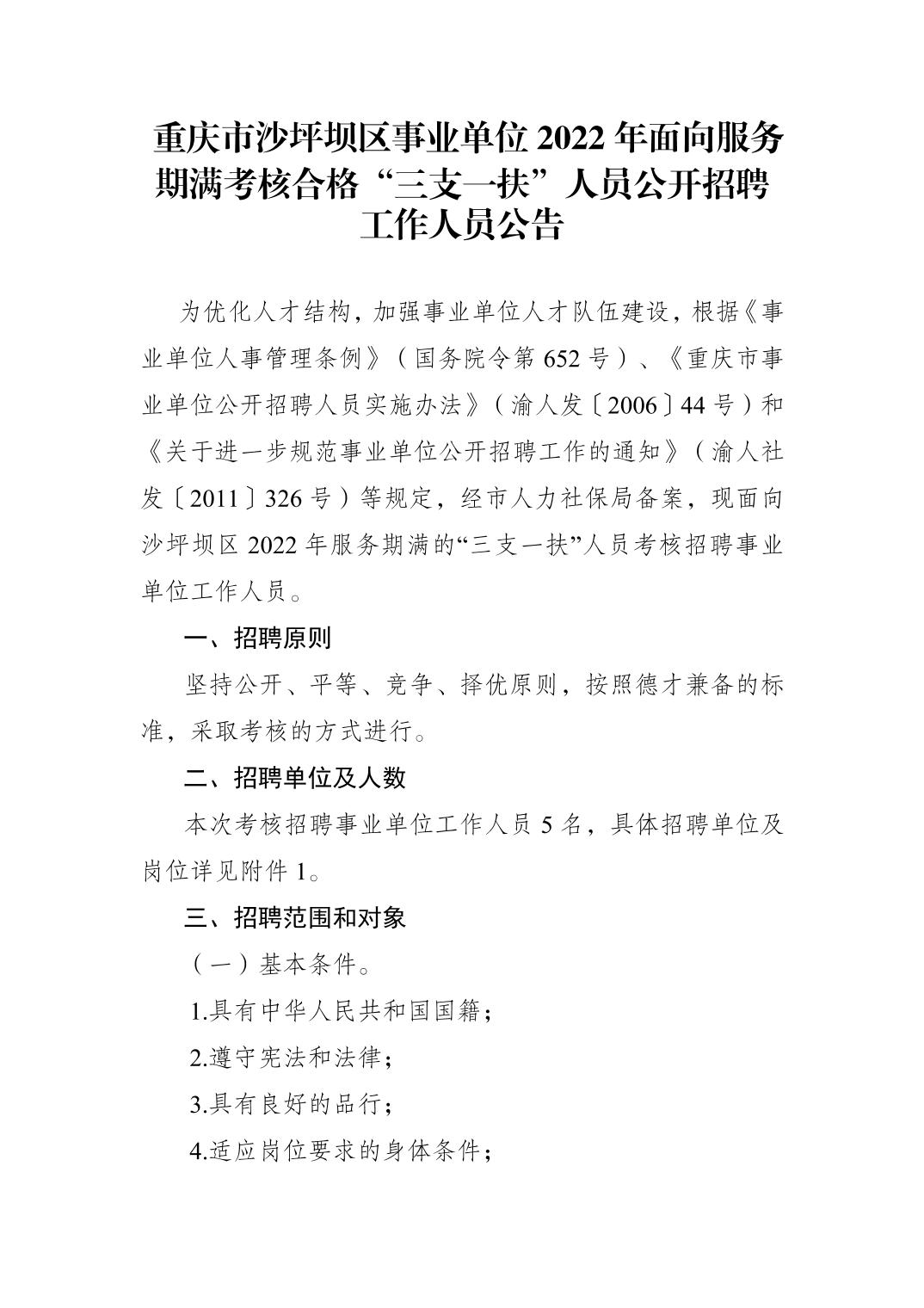 2022年重慶沙坪壩區(qū)事業(yè)單位面向服務(wù)期滿考核合格“三支一扶”人員招聘工作人員公告