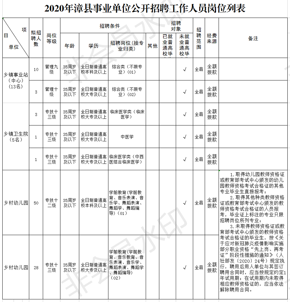 2021-01-25 15:51:03閱讀()定西市政府根據(jù)《甘肅省事業(yè)單位公開(kāi)招聘人員暫行辦法》(甘辦發(fā)〔2011〕22號(hào))、《關(guān)于進(jìn)一步規(guī)范事業(yè)單位公開(kāi)招聘工作的通知》(甘人社通〔2016〕48號(hào))、《關(guān)于進(jìn)一步做好艱苦邊遠(yuǎn)地區(qū)縣鄉(xiāng)事業(yè)單位公開(kāi)招聘工作的通知》(甘人社通〔2017〕276號(hào))、《關(guān)于應(yīng)對(duì)新冠肺炎疫情影響實(shí)施部分職業(yè)資格“先上崗、再考證”階段性措施的通知》(人社部發(fā)〔2020〕24號(hào))和《定西市事業(yè)單位公開(kāi)招聘人員實(shí)施意見(jiàn)(試行)》(定政辦發(fā)〔2011〕231號(hào))、《定西市事業(yè)單位公開(kāi)招聘人員實(shí)施意見(jiàn)的補(bǔ)充意見(jiàn)》(定政辦發(fā)〔2014〕97號(hào))、《關(guān)于取消定西市事業(yè)單位公開(kāi)招聘人員加分項(xiàng)政策的通知》(定政辦發(fā)〔2016〕130號(hào))精神,2020年我市繼續(xù)采取公開(kāi)招聘的辦法,擇優(yōu)聘用一定數(shù)量的高校畢業(yè)生到渭源縣、岷縣、漳縣和市直事業(yè)單位工作?,F(xiàn)將有關(guān)事項(xiàng)公告如下: