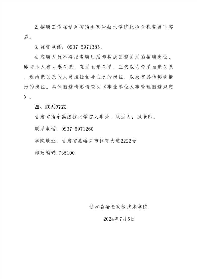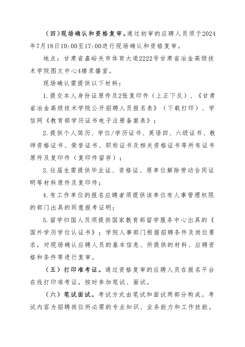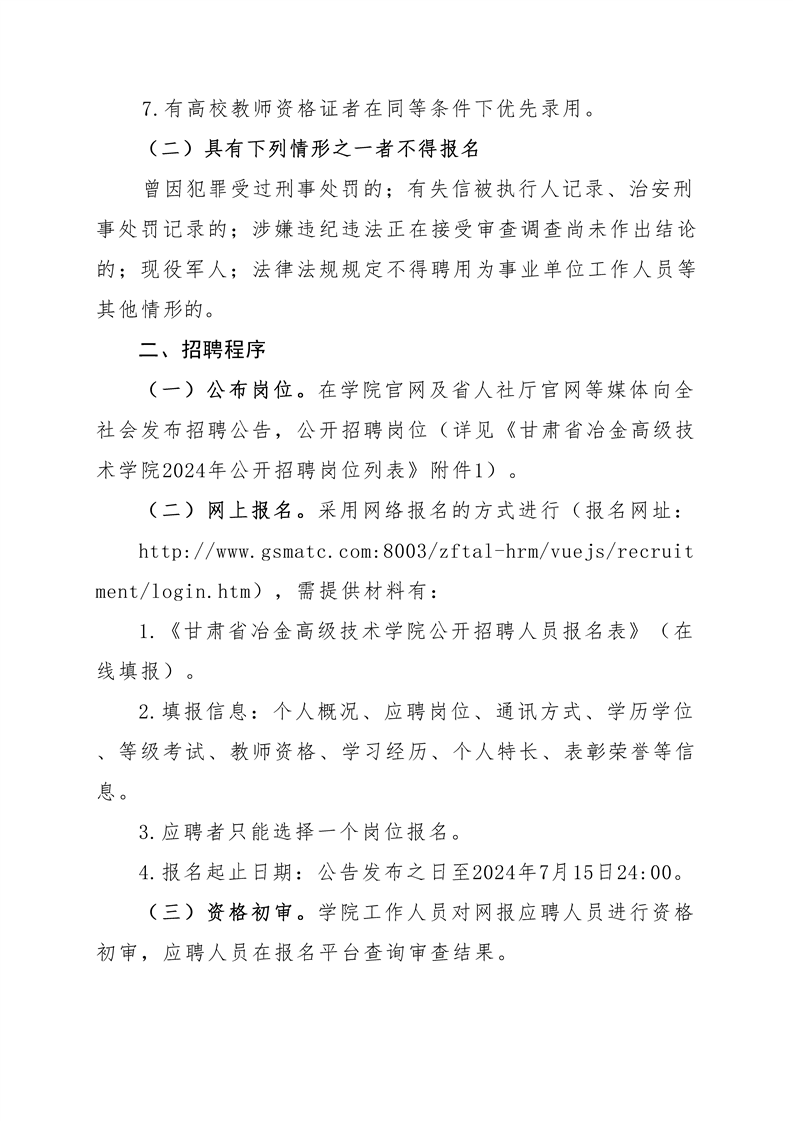 甘肅省冶金高級技術(shù)學院2024年公開招聘崗位列表 -公告.pdf