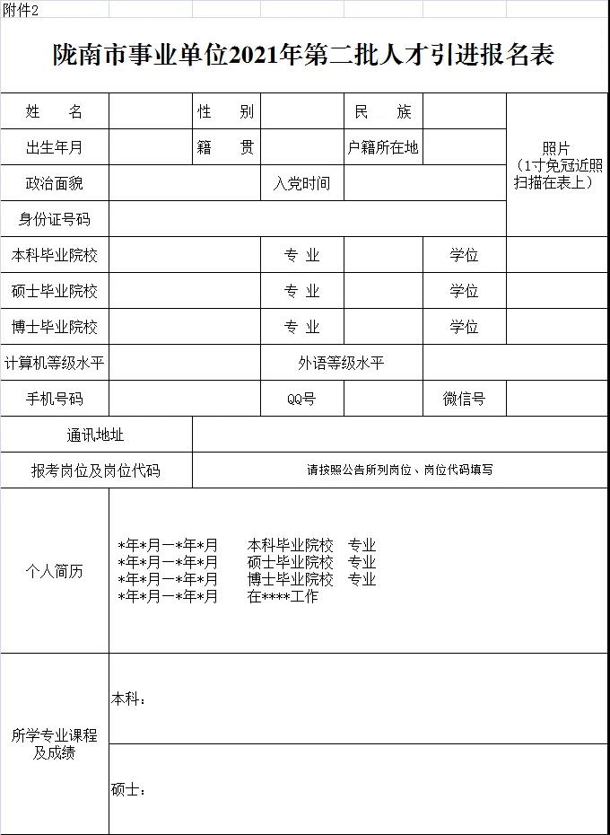 附件:1.隴南市事業(yè)單位2021年第二批人才引進崗位計劃表