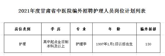 6、具備崗位要求的其他條件(見下《2021年度甘肅省中醫(yī)院編外護(hù)理招聘人員崗位計(jì)劃列表》)。