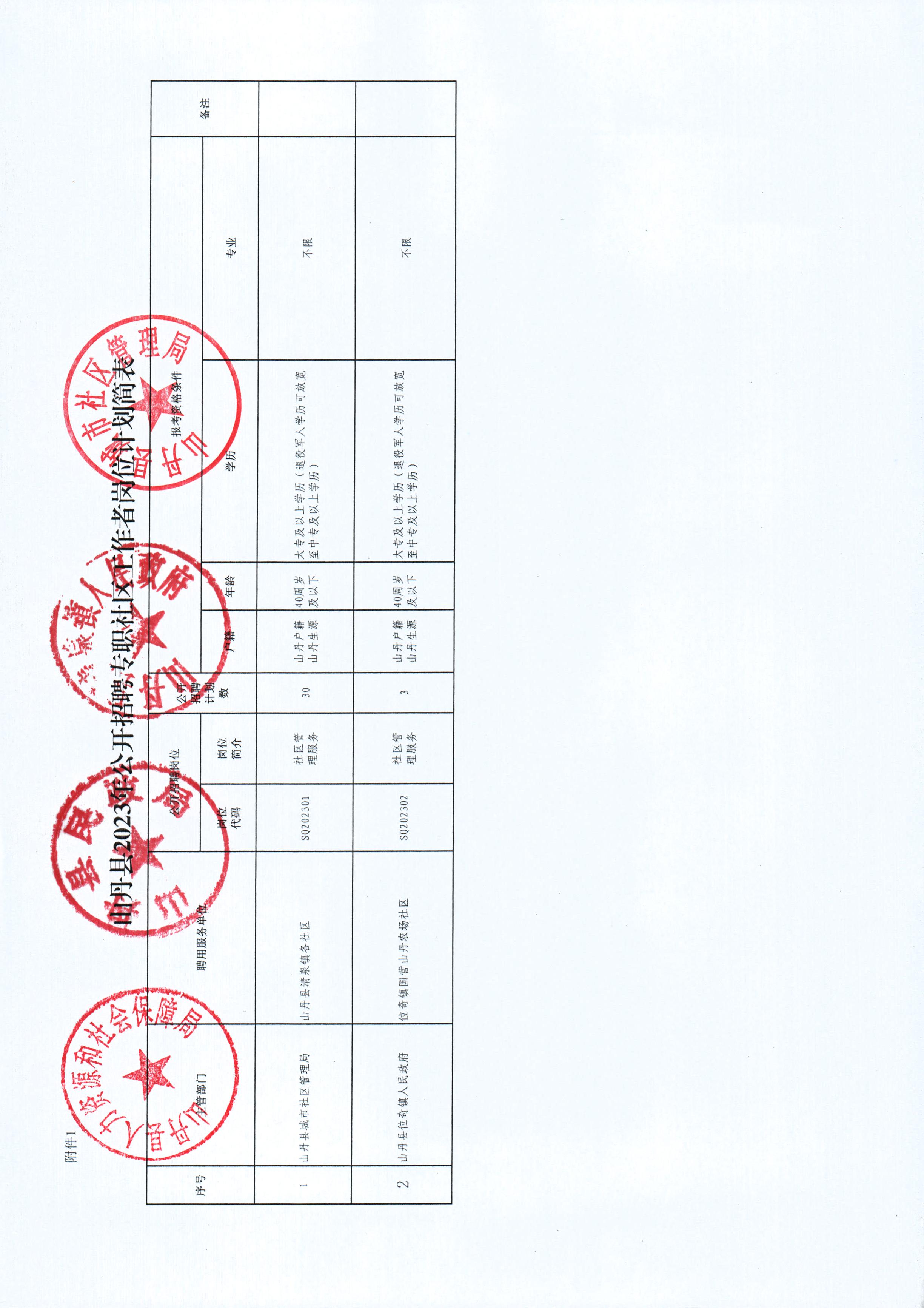 附件下載:附件1山丹縣2023年公開招聘專職社區(qū)工作者崗位計(jì)劃簡表.xls