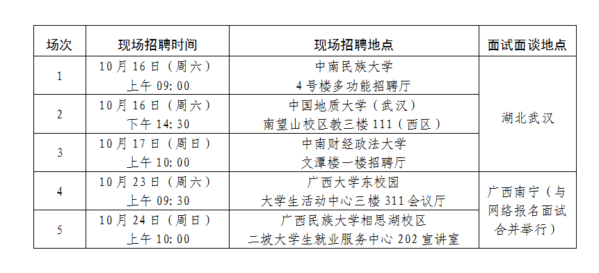 (一)現(xiàn)場報名。招聘會現(xiàn)場接受應(yīng)聘報名,應(yīng)聘者應(yīng)攜帶《高校畢業(yè)生就業(yè)推薦表》(已畢業(yè)的攜帶相應(yīng)學(xué)歷學(xué)位證書)和身份證、專業(yè)技術(shù)資格證書等材料,并選擇符合條件的崗位,填寫《2021年崇左市高層次(急需緊缺)人才招聘報名審核登記表》進行現(xiàn)場報名?,F(xiàn)場招聘時間安排:
