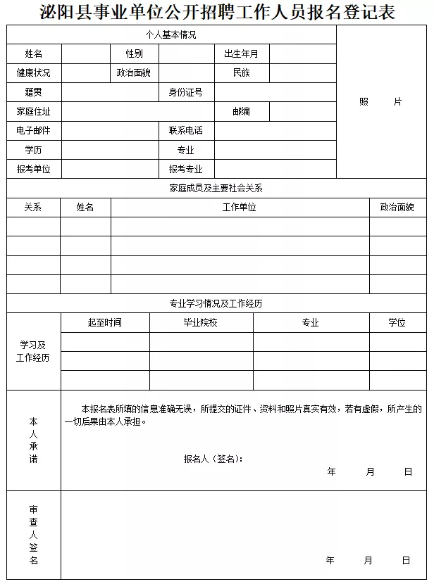 2、泌陽(yáng)縣事業(yè)單位招聘工作人員報(bào)名登記表。