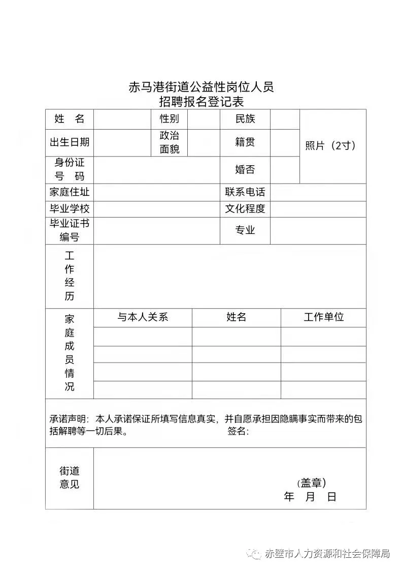(1)赤馬港街道公益性崗位人員招聘報名登記表
