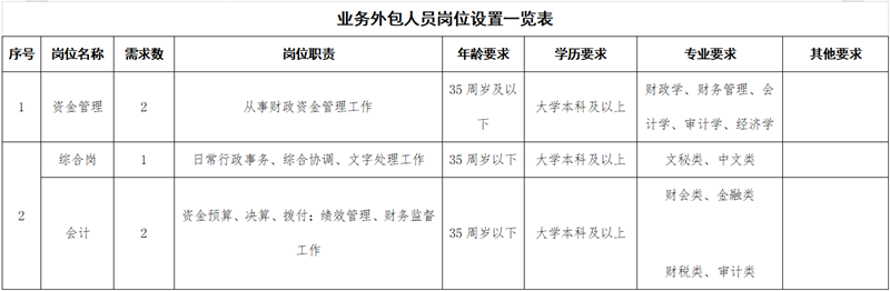 附表:業(yè)務(wù)外包人員崗位設(shè)置一覽表