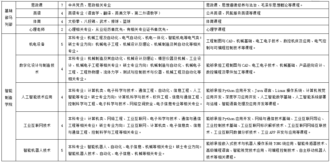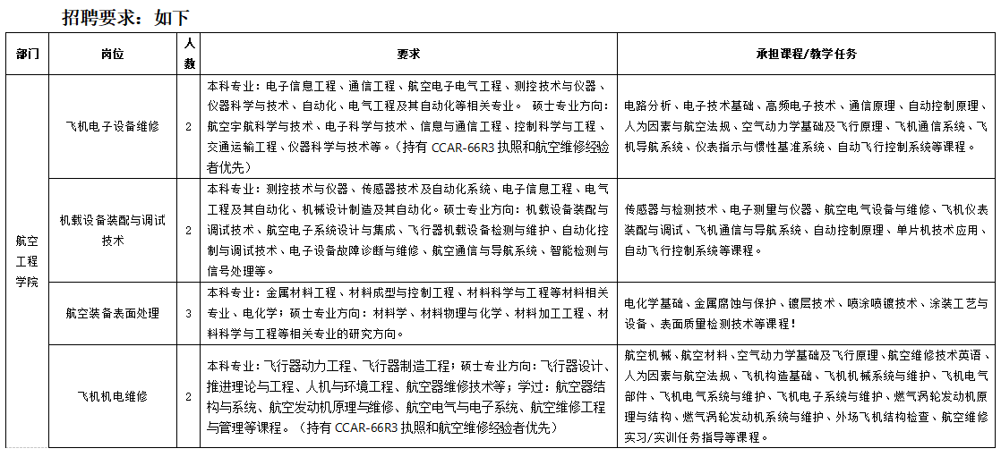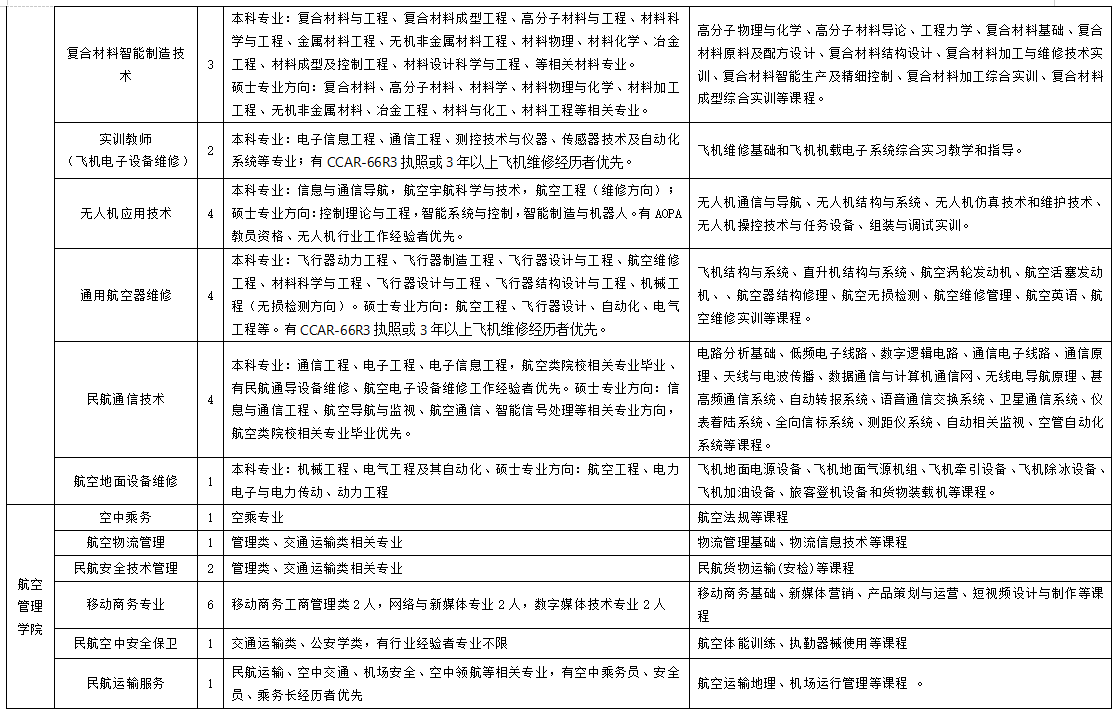1.英語(yǔ)、體育、空乘專業(yè)教師,以及實(shí)訓(xùn)教師、實(shí)驗(yàn)管理員需本科及以上學(xué)歷,且具備 3 年以上高校教學(xué)經(jīng)驗(yàn)或相關(guān)工作經(jīng)驗(yàn)。