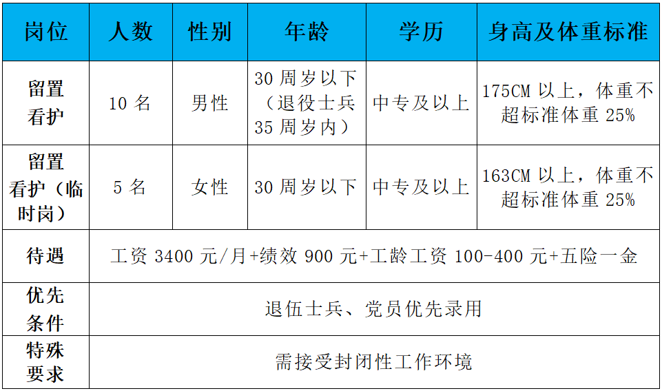 5、身心健康,體貌端正,無(wú)殘疾、無(wú)口吃、無(wú)重聽、無(wú)紋身、無(wú)色盲、無(wú)傳染性疾病,裸眼視力在4.8以上,直系親屬及本人無(wú)精神疾病病史,具有正常履行工作職責(zé)的身體條件;
