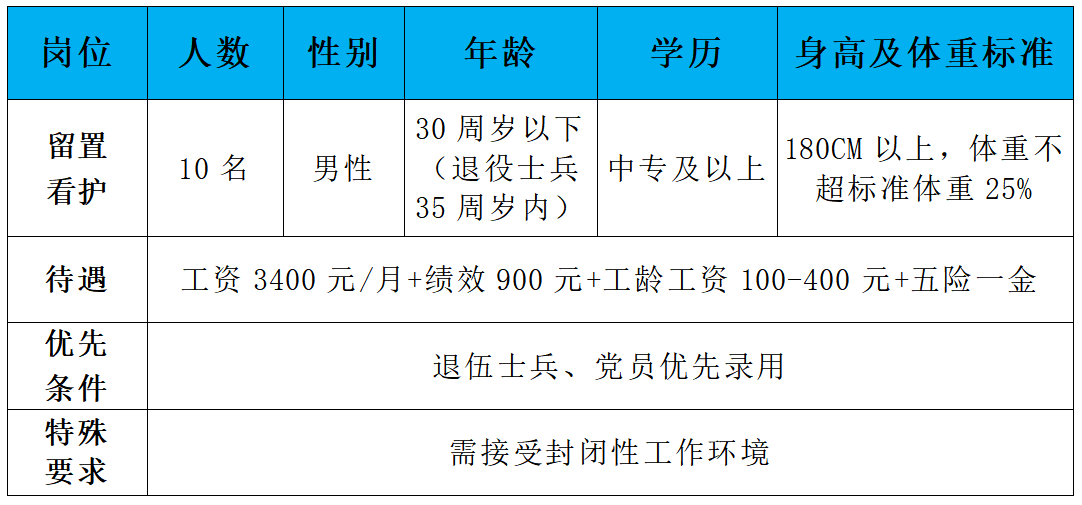 5、身心健康,體貌端正,無殘疾、無口吃、無重聽、無紋身、無色盲、無傳染性疾病,裸眼視力在4.8以上,直系親屬及本人無精神疾病病史,具有正常履行工作職責(zé)的身體條件;