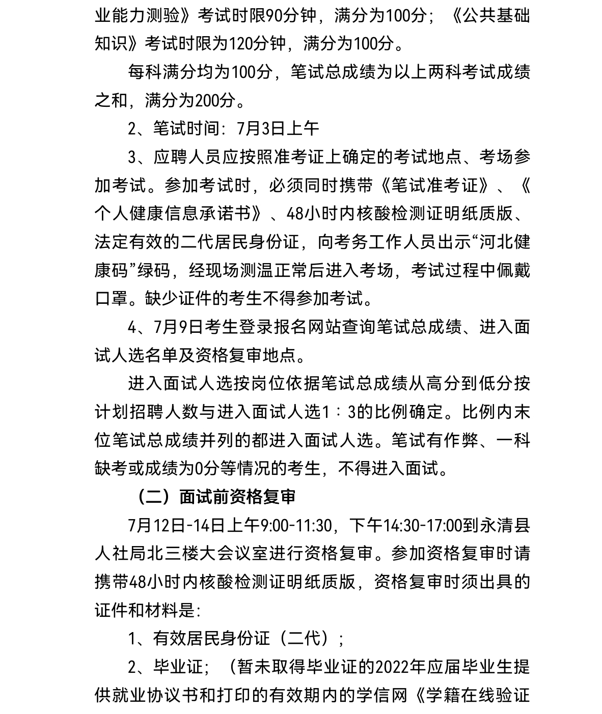 附件2:永清縣2022年事業(yè)單位公開招聘工作人員考試防疫與安全須知