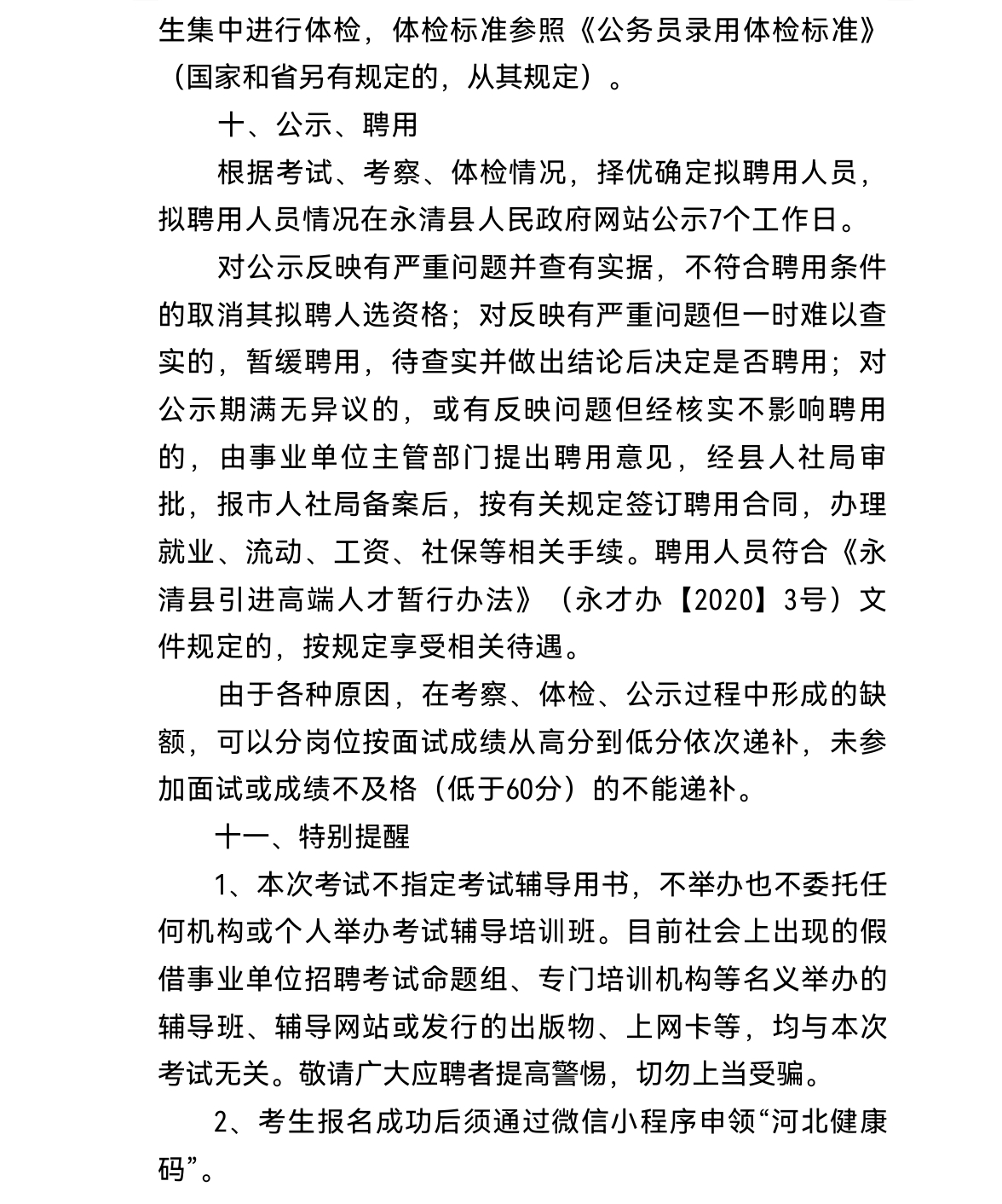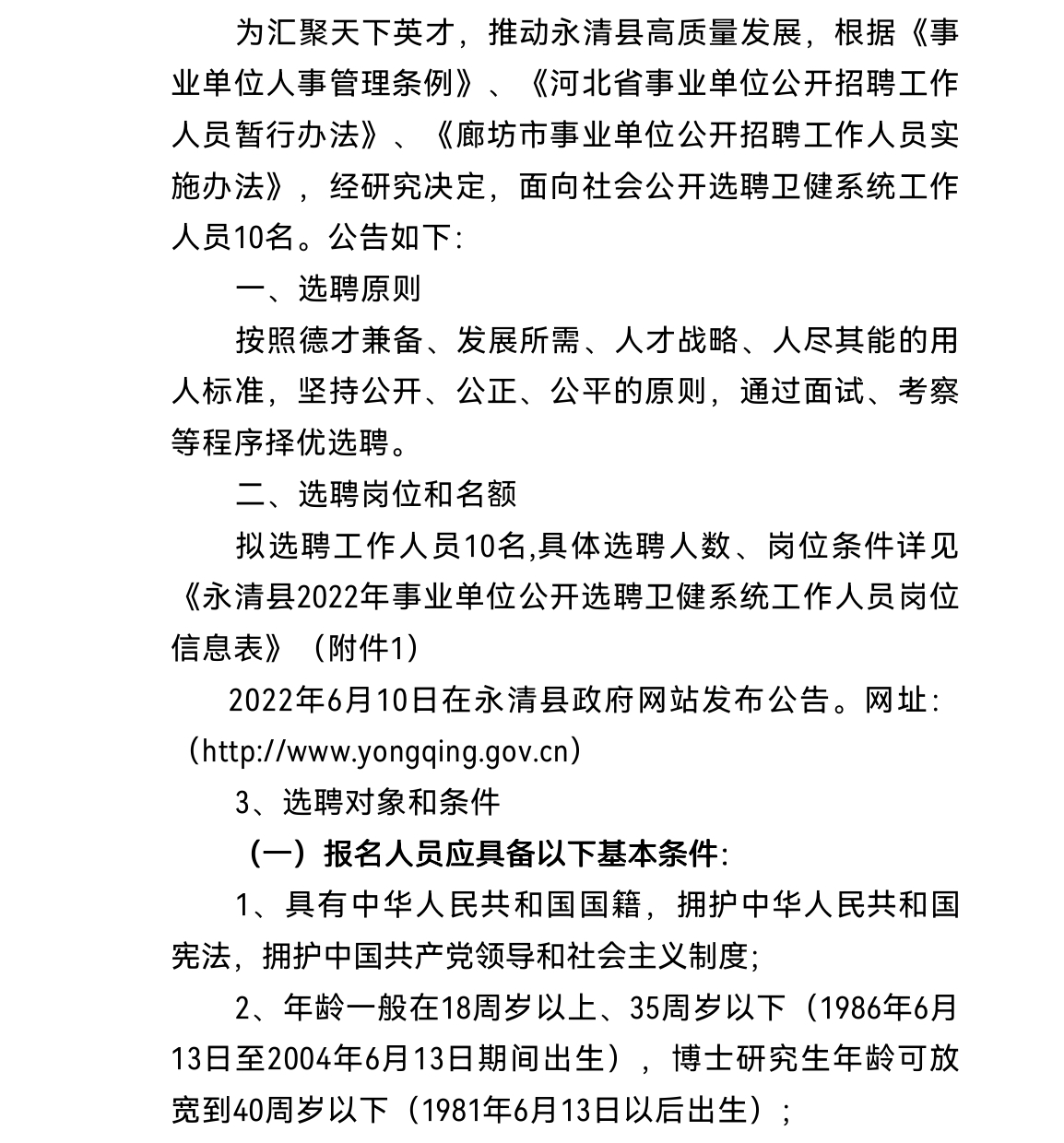 2022年廊坊永清縣事業(yè)單位公開(kāi)選聘衛(wèi)健系統(tǒng)工作人員公告
