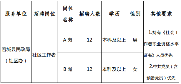 2023年河北雄安新區(qū)容城縣人力資源和社會保障局公開補(bǔ)招社區(qū)工作者公告