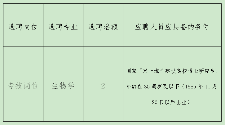 我院計劃此次選聘生物學(xué)博士研究生2名。