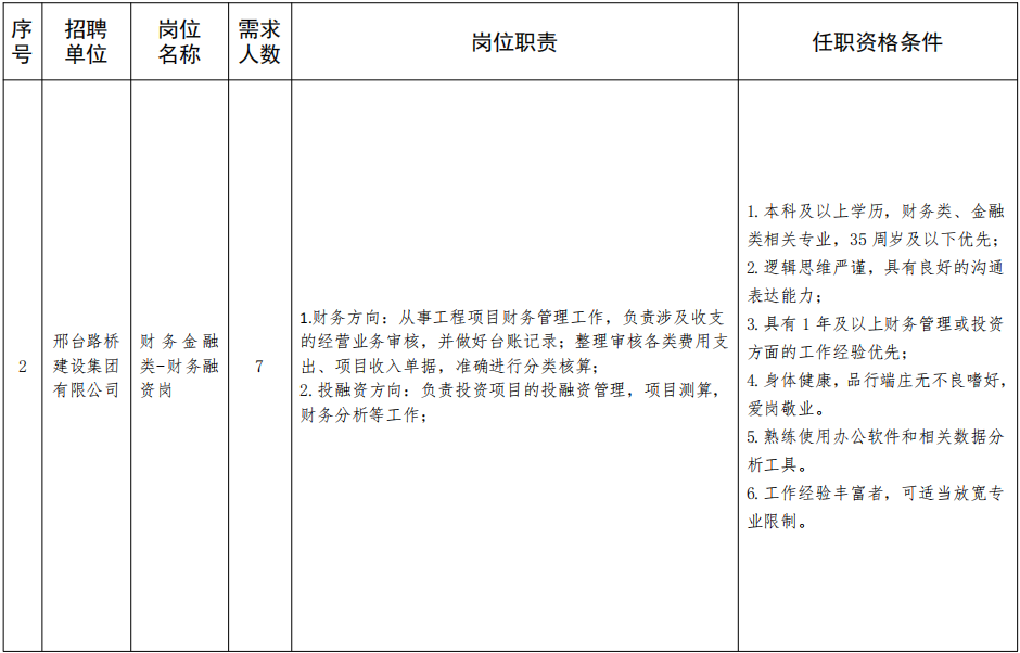 附件:邢臺(tái)市交通建設(shè)集團(tuán)有限公司2024年度社會(huì)招聘所屬企業(yè)崗位簡(jiǎn)要