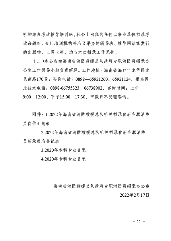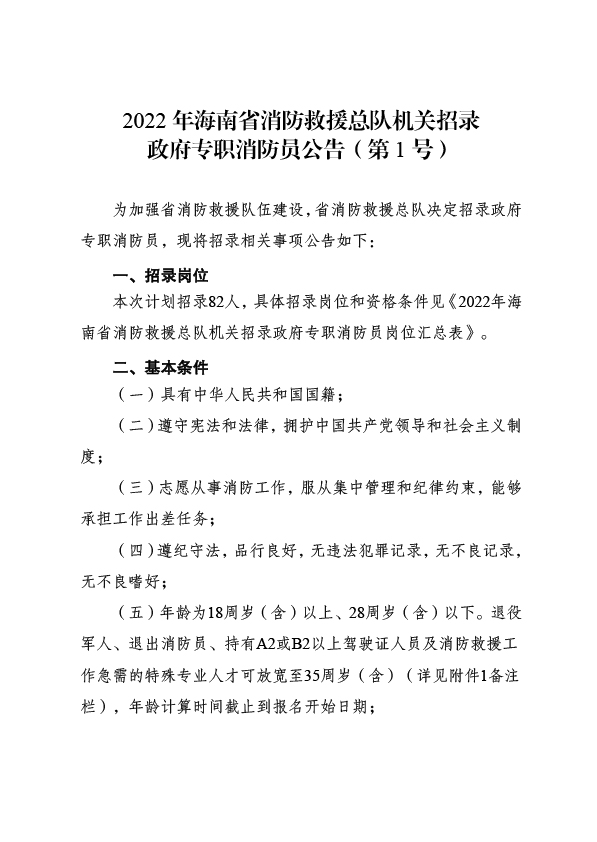 2022年海南省消防救援總隊機關招錄政府專職消防員公告(第1號)