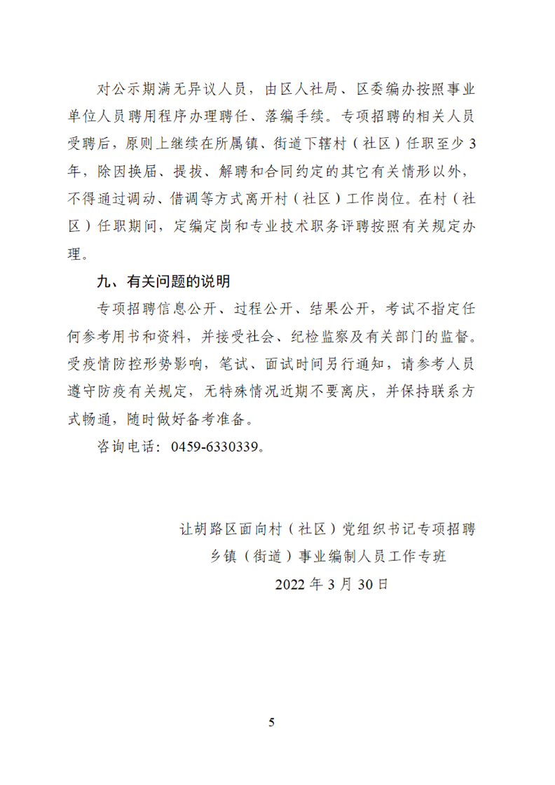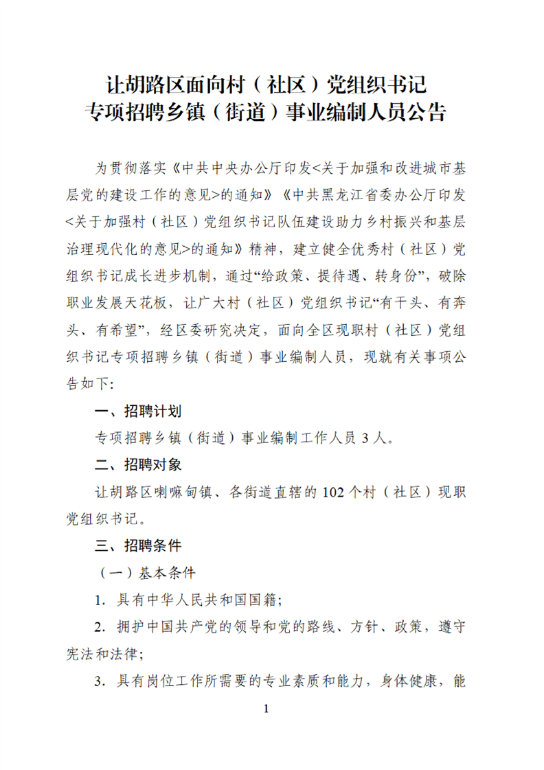 2022年大慶讓胡路區(qū)面向村(社區(qū))黨組織書記專項(xiàng)招聘鄉(xiāng)鎮(zhèn)(街道)事業(yè)編制人員公告