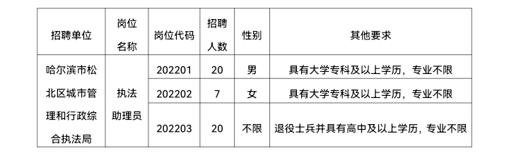 2022年哈爾濱市松北區(qū)城市管理和行政綜合執(zhí)法局公開(kāi)招聘執(zhí)法助理員公告