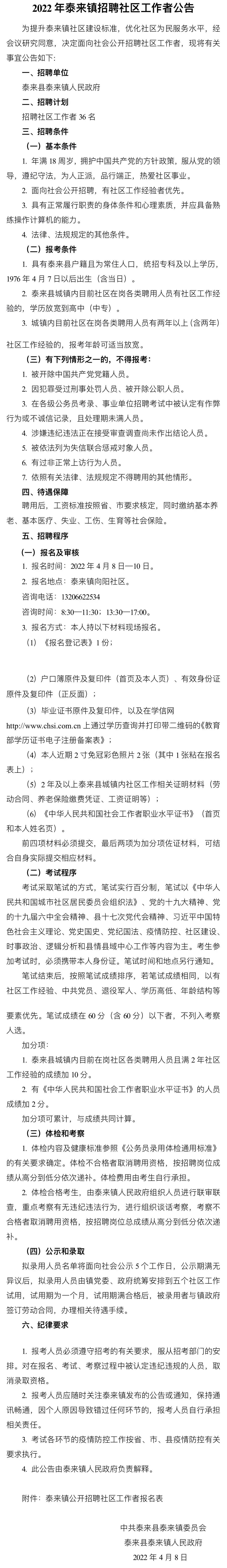 2022-04-10 23:50:19閱讀()泰來黨建為提升泰來鎮(zhèn)社區(qū)建設(shè)標準,優(yōu)化社區(qū)為民服務(wù)水平,經(jīng)會議研究同意,決定面向社會公開招聘社區(qū)工作者,現(xiàn)將有關(guān)事宜公告如下: