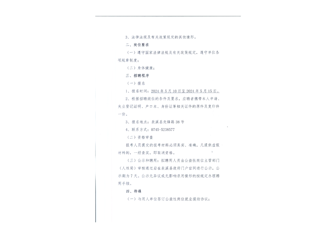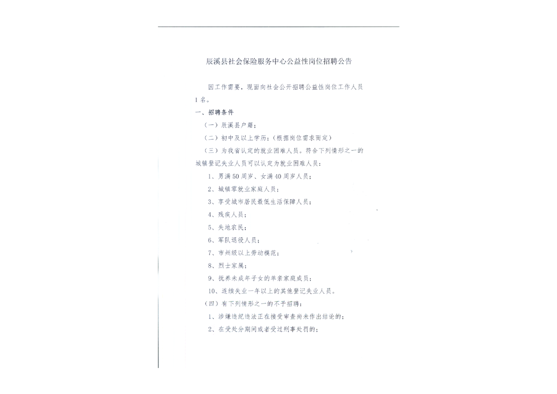 2024年懷化辰溪縣社會保險(xiǎn)服務(wù)中心公益性崗位招聘公告