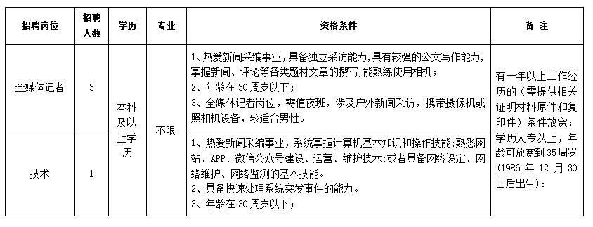 3、報(bào)名注意事項(xiàng):采取現(xiàn)場(chǎng)報(bào)名方式。報(bào)名時(shí)須提供近期免冠同底版1寸正面彩色照片3張、本人身份證、畢業(yè)證書(shū)、學(xué)位證書(shū)、工作經(jīng)歷證明和其他相關(guān)證件原件、復(fù)印件及其他證明材料(如署名完成的新聞作品、美術(shù)設(shè)計(jì)作品、新媒體作品等)。填寫(xiě)《鹽城市鹽都區(qū)融媒體中心2021年公開(kāi)招聘工作人員報(bào)名表》(見(jiàn)附件)一式兩份。在規(guī)定時(shí)間內(nèi),如本人現(xiàn)場(chǎng)報(bào)名有困難的,可委托他人代為報(bào)名,代報(bào)名人須提供本人身份證及報(bào)考者需提供的報(bào)名材料。