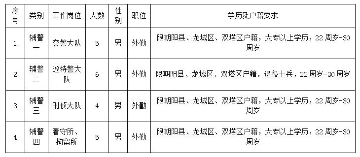 2022年朝陽市朝陽縣公安局招考輔警公告