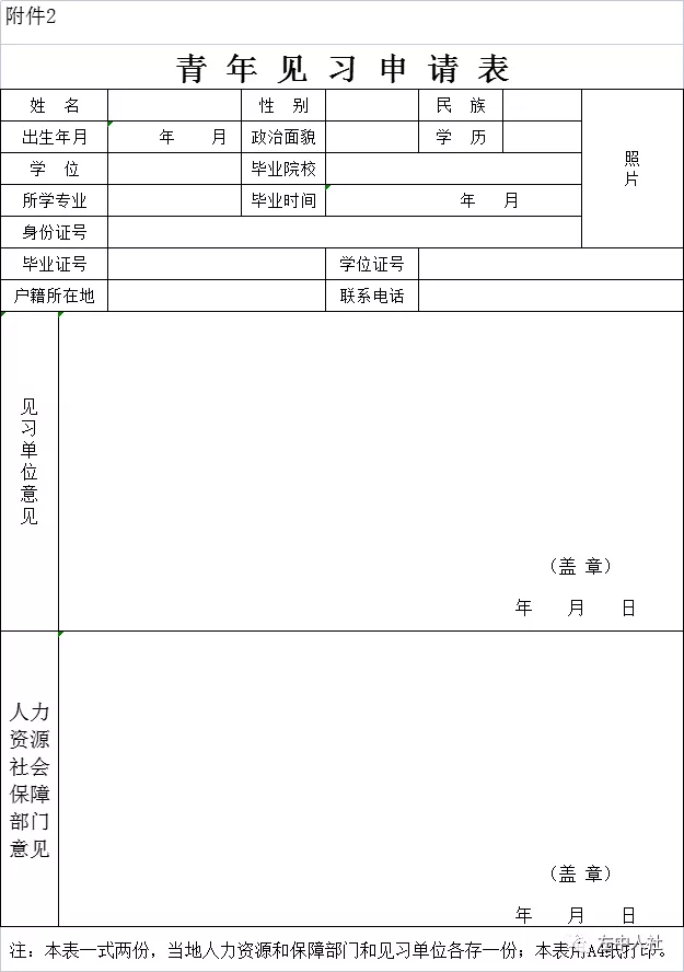 1.《青年見習(xí)申請表》(附件2),一式兩份;
