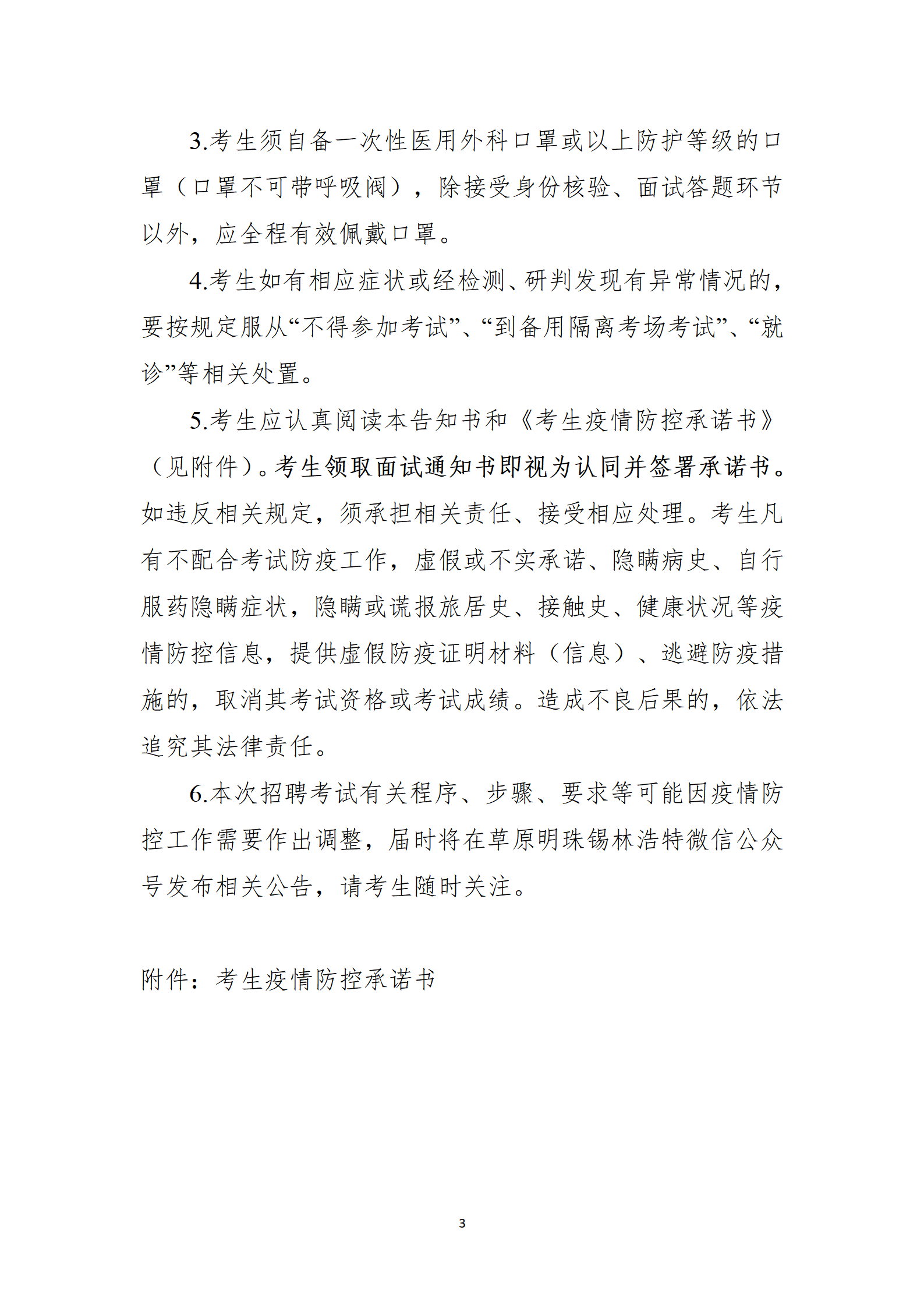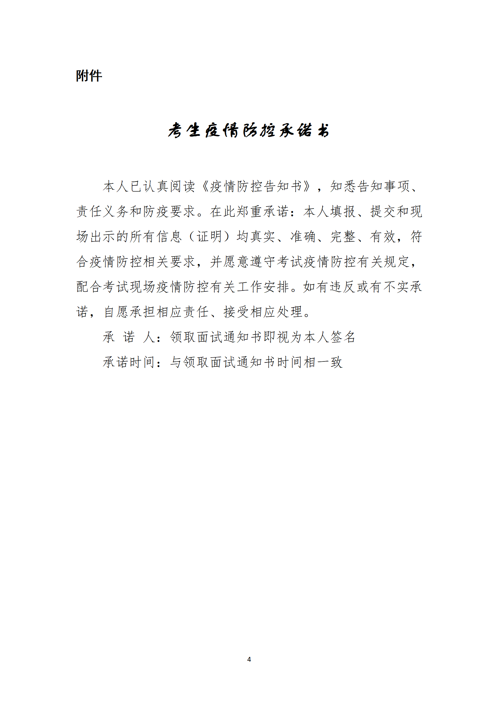 本次招聘考試考試嚴(yán)格執(zhí)行《疫情防控告知書》(附件4),并簽訂《考生疫情防控承諾書》。如有違反或有不實(shí)承諾,由報(bào)考人員承擔(dān)相應(yīng)責(zé)任、接受相應(yīng)處理。