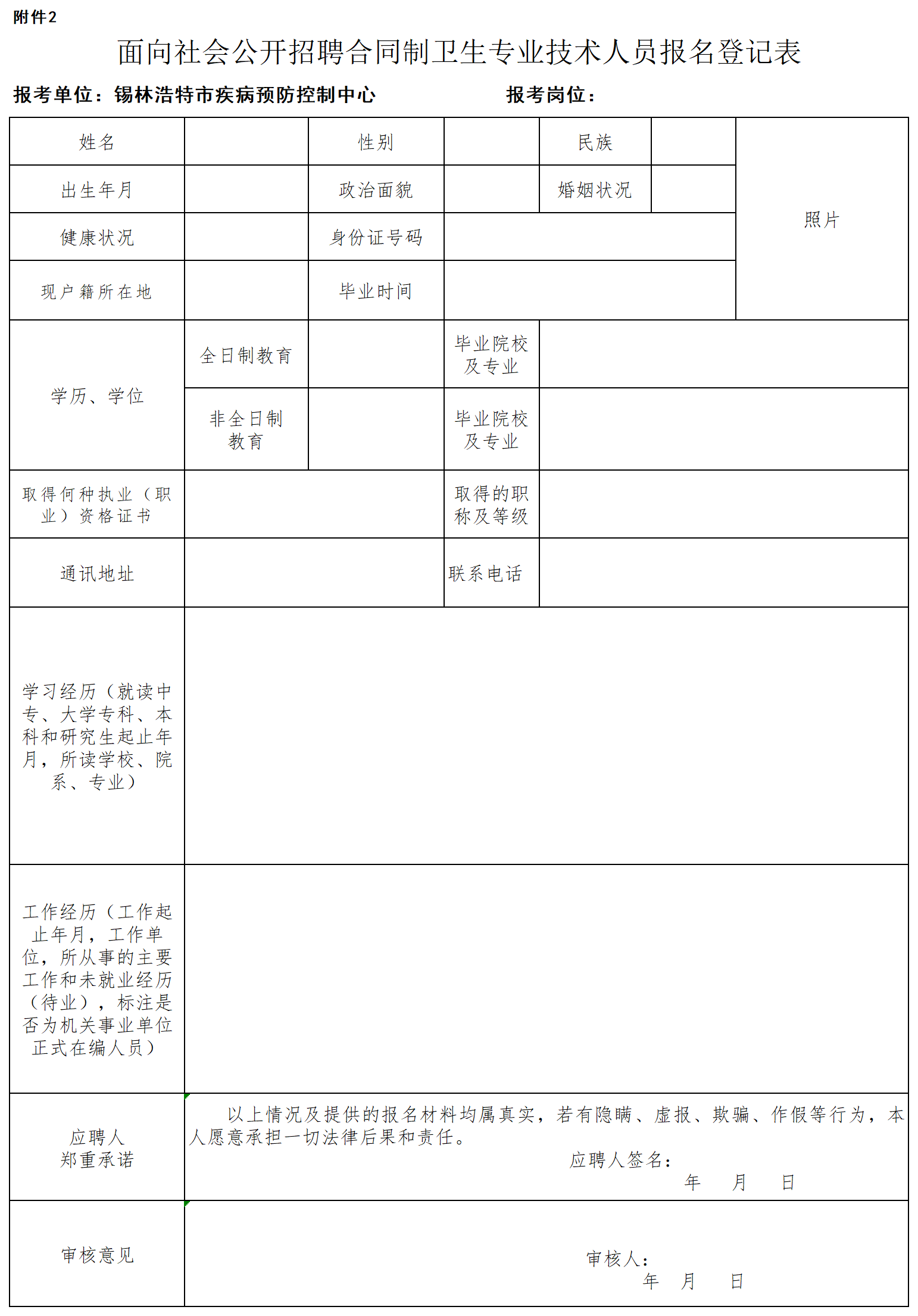 2.面向社會(huì)公開招聘合同制衛(wèi)生專業(yè)技術(shù)人員報(bào)名登記表