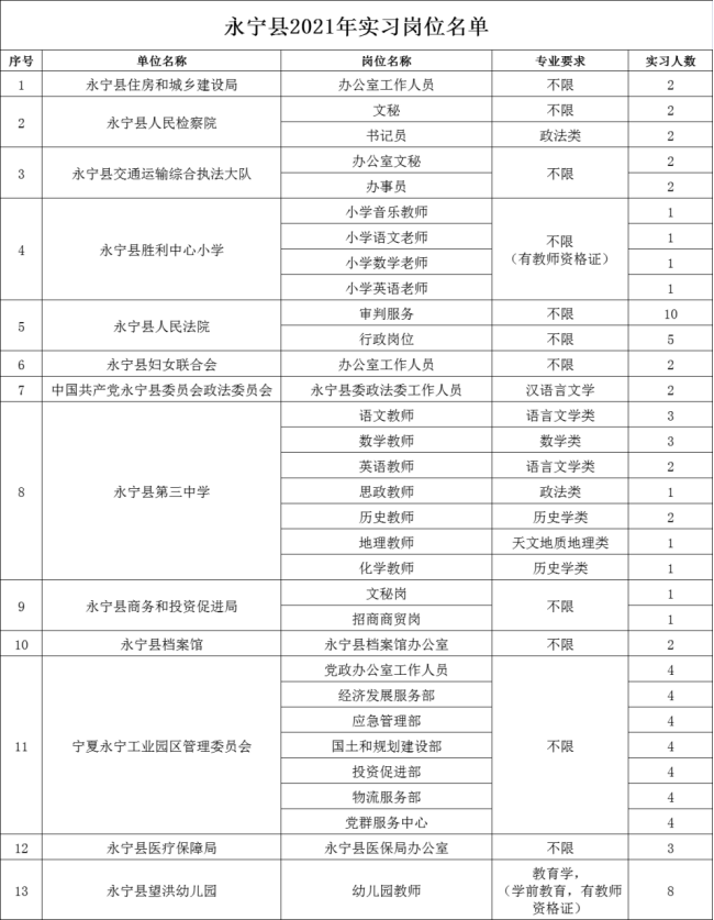 2021年銀川永寧縣高校畢業(yè)生到機關事業(yè)單位實習招募公告