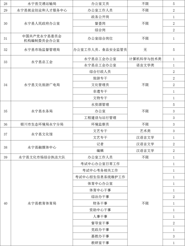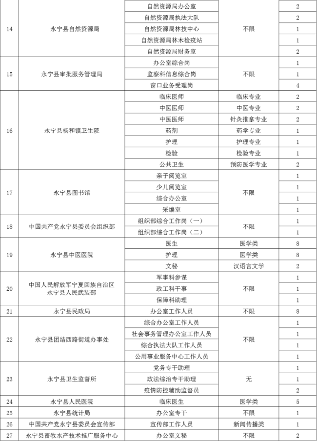 2021-08-09 22:23:18閱讀()銀川公共招聘網(wǎng)根據(jù)《自治區(qū)人力資源和社會保障廳 財政廳關于做好2021年高校畢業(yè)生到機關事業(yè)單位實習工作的通知》(寧人社函〔2021〕67號)文件精神,現(xiàn)將永寧縣高校畢業(yè)生機關事業(yè)單位招募公告予以公示。