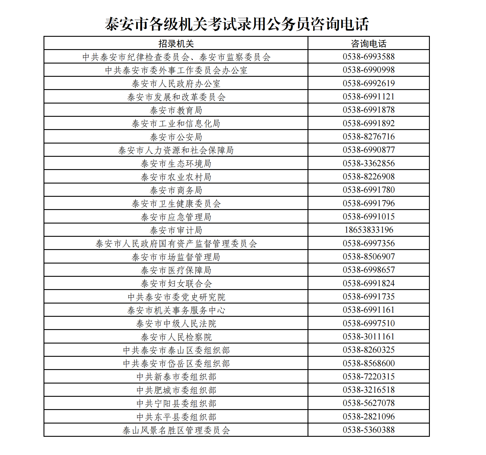 2025年泰安市各級(jí)機(jī)關(guān)考試錄用公務(wù)員公告及職位表