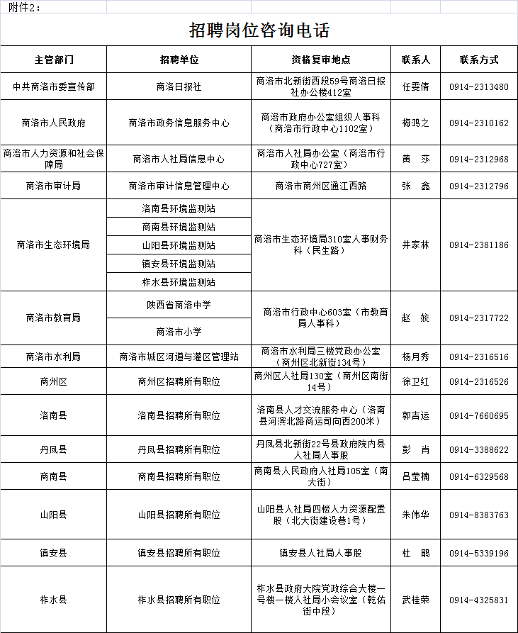 在商洛市人力資源和社會(huì)保障局官網(wǎng)發(fā)布招聘公告(http://rsj.shangluo.gov.cn/),詳見《2022年商洛市事業(yè)單位引進(jìn)第二批高層次人才崗位表》(附件1)。