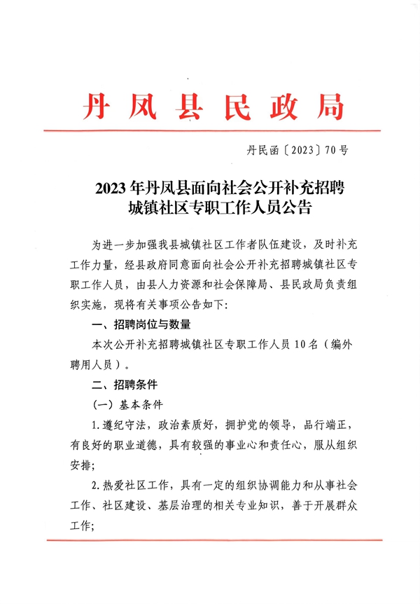 2023年商洛丹鳳縣面向社會(huì)公開補(bǔ)充招聘城鎮(zhèn)社區(qū)專職工作人員公告