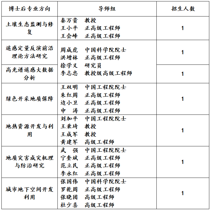 2021-10-22 20:29:00閱讀()陜西省地質(zhì)調(diào)查院陜西省地質(zhì)調(diào)查院為省政府直屬公益一類事業(yè)單位,主要承擔全省公益性、基礎性、戰(zhàn)略性地質(zhì)調(diào)查工作。2018年,經(jīng)人力資源和社會保障部、全國博士后管理委員會批準,陜西省地質(zhì)調(diào)查院設立博士后科研工作站,現(xiàn)面向海內(nèi)外公開招收優(yōu)秀博士后研究人員,歡迎海內(nèi)外獲得博士學位,品學兼優(yōu)、身體健康的優(yōu)秀人才加入?,F(xiàn)將有關事項公告如下: