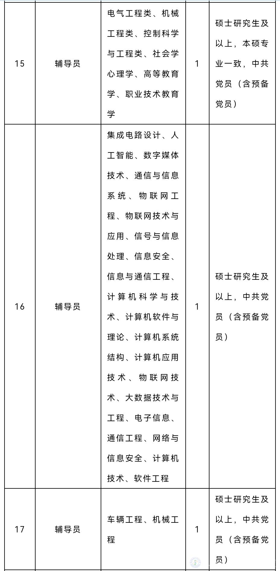 (七)各學(xué)歷階段專業(yè)須一致或相近,有特殊需求的崗位,以各崗位具體要求為準(zhǔn);