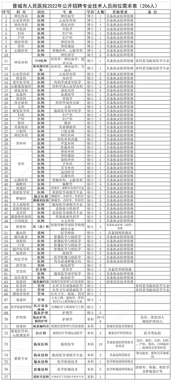 2022年晉城市人民醫(yī)院公開(kāi)招聘專業(yè)技術(shù)人員公告