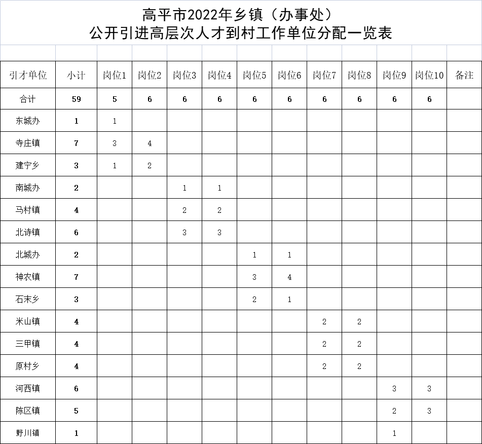 引進(jìn)碩士研究生59名。具體崗位及要求詳見(jiàn)《高平市2022年鄉(xiāng)鎮(zhèn)(辦事處)公開引進(jìn)高層次人才到村工作崗位及條件一覽表》(附件1)。