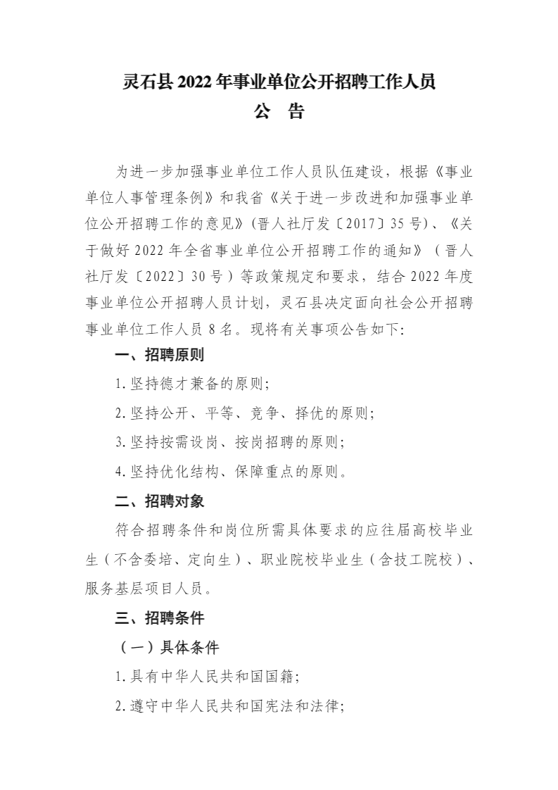 2022年晉中靈石縣事業(yè)單位公開招聘工作人員公告