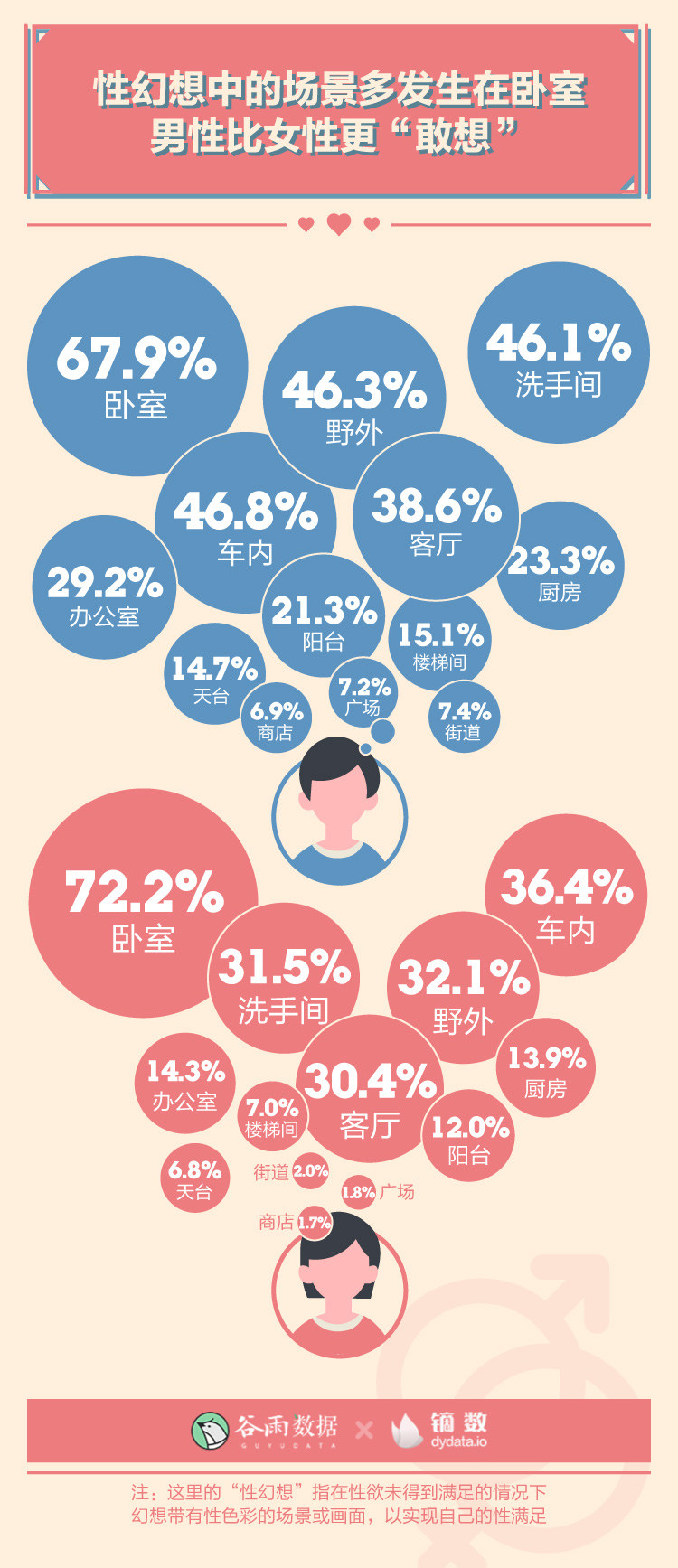 不過,臥室之外的地方,男性明顯比女性更“敢想”。