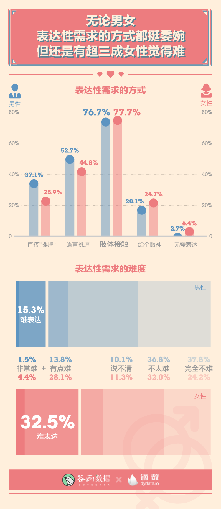 有32.5%女性和15.3%男性都覺得難以向伴侶表達(dá)性需求。