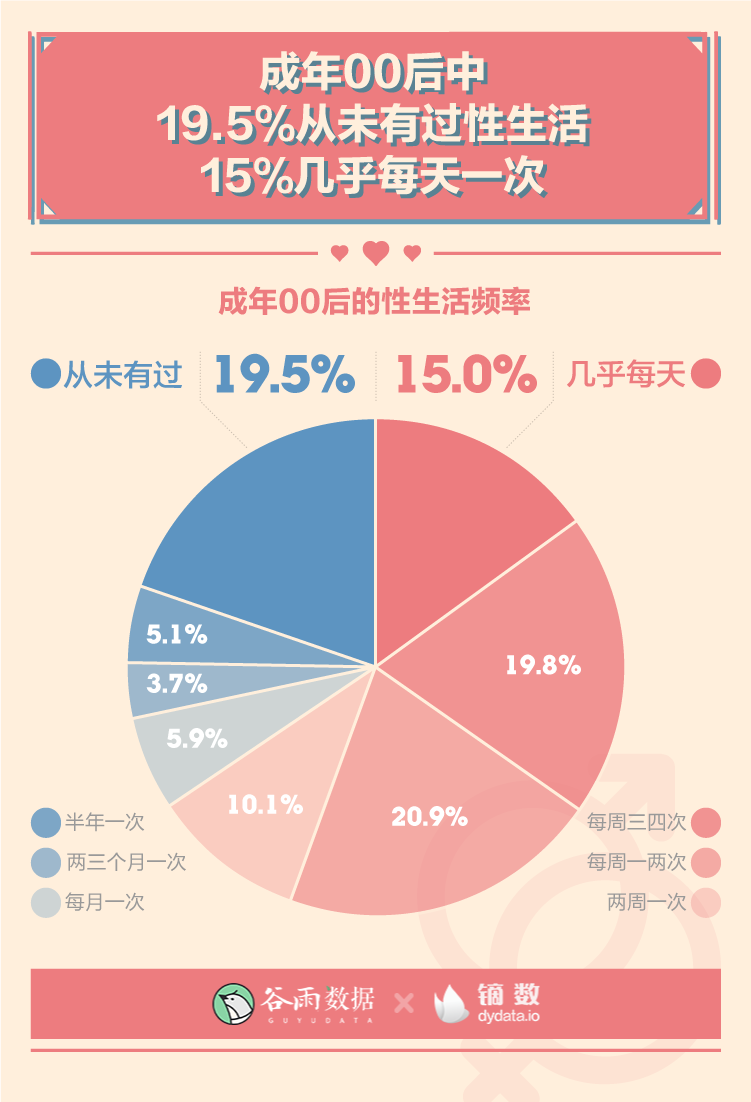 調(diào)查顯示,有80.5%的成年00后已經(jīng)有過性生活,其中15%的性生活頻率達(dá)到每天一次。