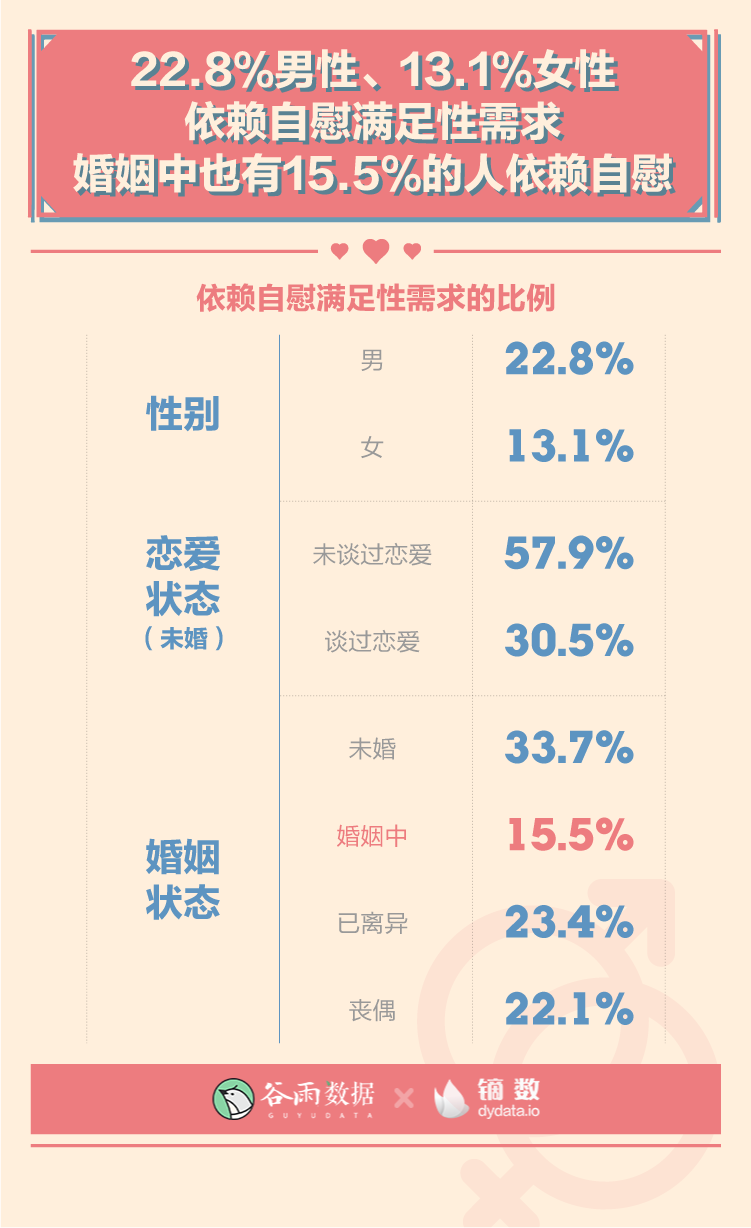 22.8%的男性、13.1%的女性當(dāng)前依賴自慰滿足性需求。