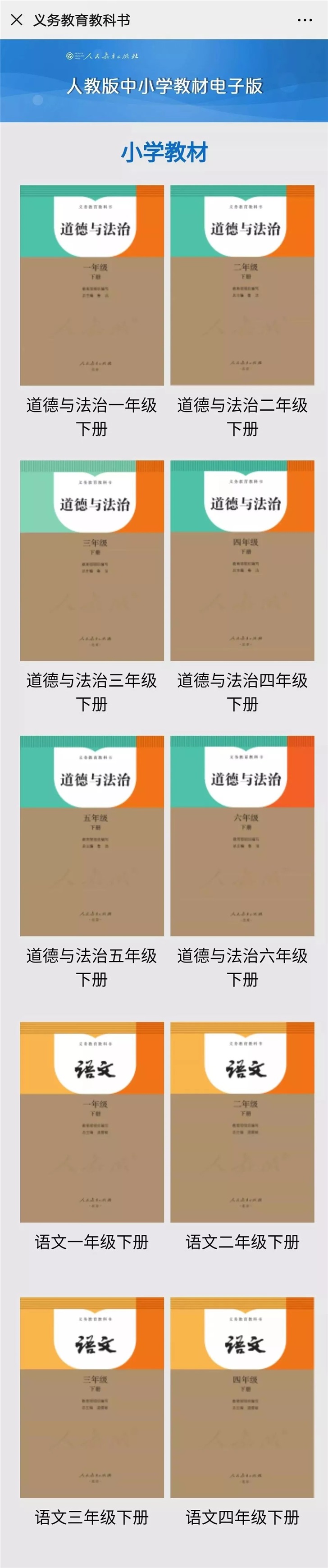 例如:點擊“義務(wù)教育教科書”,選擇小學(xué)教材中的“語文一年級下冊”,即可獲取相對應(yīng)的電子版教科書。