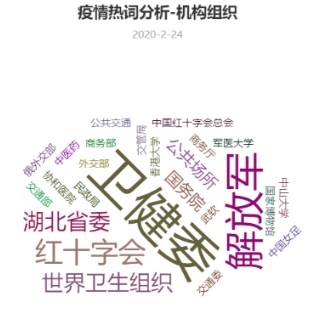 另外,從機構(gòu)來看,最受關(guān)注的不出意料是衛(wèi)健委。從1月3日,武漢衛(wèi)健委通報不明原因肺炎開始,衛(wèi)健委就一直處于疫情防控的輿論中心,也一直承擔著辟謠的工作,所以衛(wèi)健委關(guān)聯(lián)度最大的兩個詞便是“回應”。“衛(wèi)健委回應部分中成藥可防治肺炎”;“國家衛(wèi)健委回應黃岡衛(wèi)健委主任被免職”;“衛(wèi)健委回應公布數(shù)據(jù)與網(wǎng)傳數(shù)據(jù)差太多”……