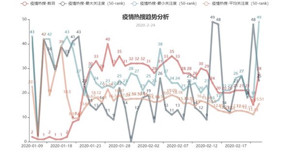 從這些熱搜和其出現(xiàn)的時間中,我們可以一窺這次的疫情的發(fā)展時間線,以及在這特殊的兩個月中,反映在數(shù)據(jù)上的人間悲歡疾苦。