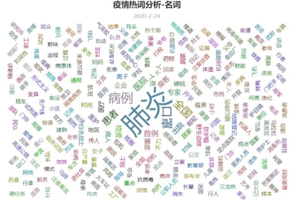 對熱搜進行了分詞然后進行統(tǒng)計,我們發(fā)現(xiàn)出現(xiàn)最多的是“肺炎”和“新增”兩個詞,顯然,這兩個詞也是最牽動人心的。