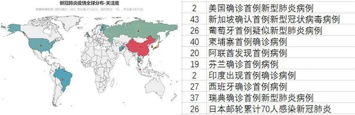 熱搜中其他國家的出現(xiàn)分為兩種情況,一是疫情中一些國家對中國的援助,二是疫情向其他國家的傳播。
