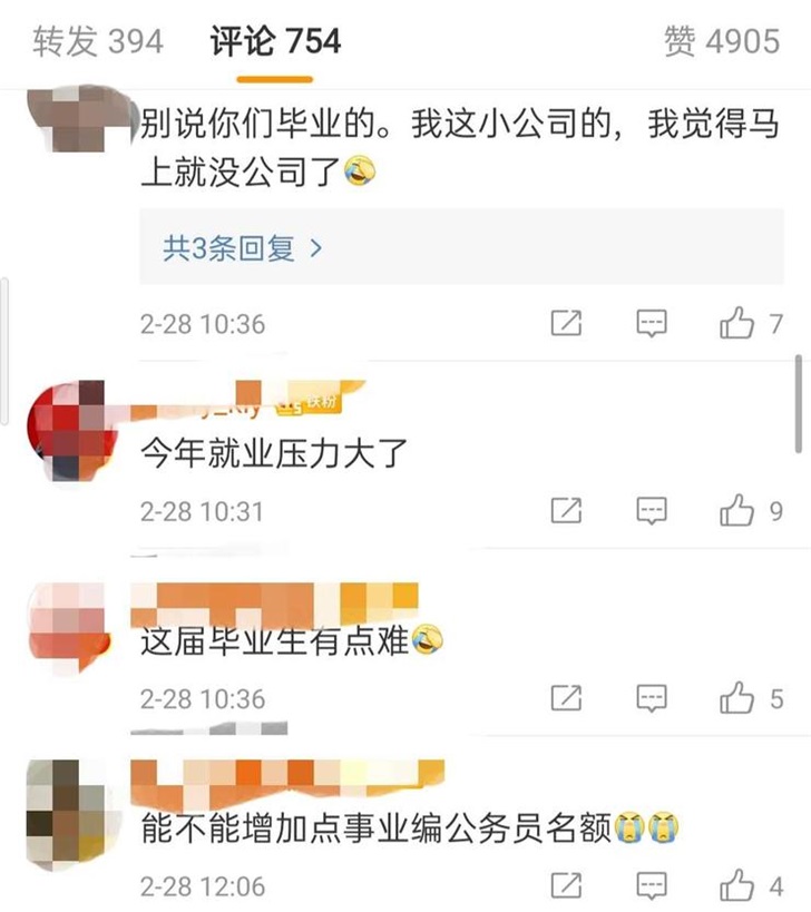 微博上對于就業(yè)難的話題討論同樣此起彼伏。