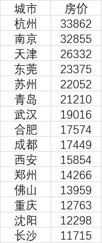 15個新一線城市房價皆過萬:杭州最高,長沙最便宜
